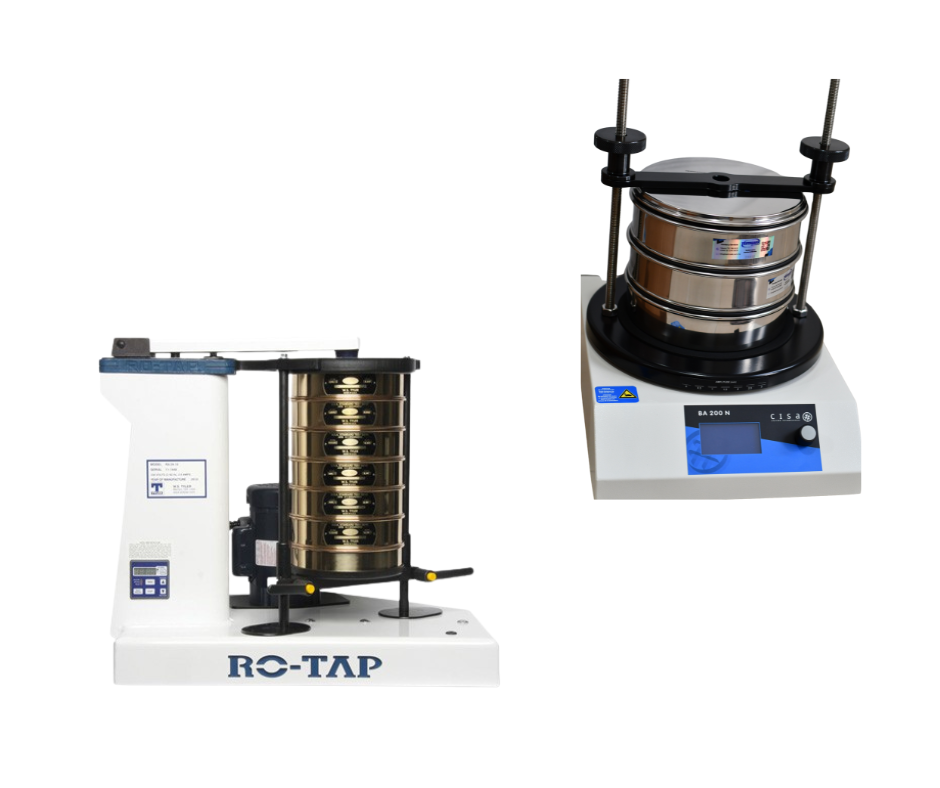 En cuanto al tamaño de partículas que cada máquina puede analizar, el rango es el mismo para ambas. El tamaño de partícula está determinado por los tamices de prueba que utiliza la máquina, lo que depende de usted y de sus procesos para cada una. Los tamaños de malla de tamiz típicos varían desde 4" hasta 20 um.