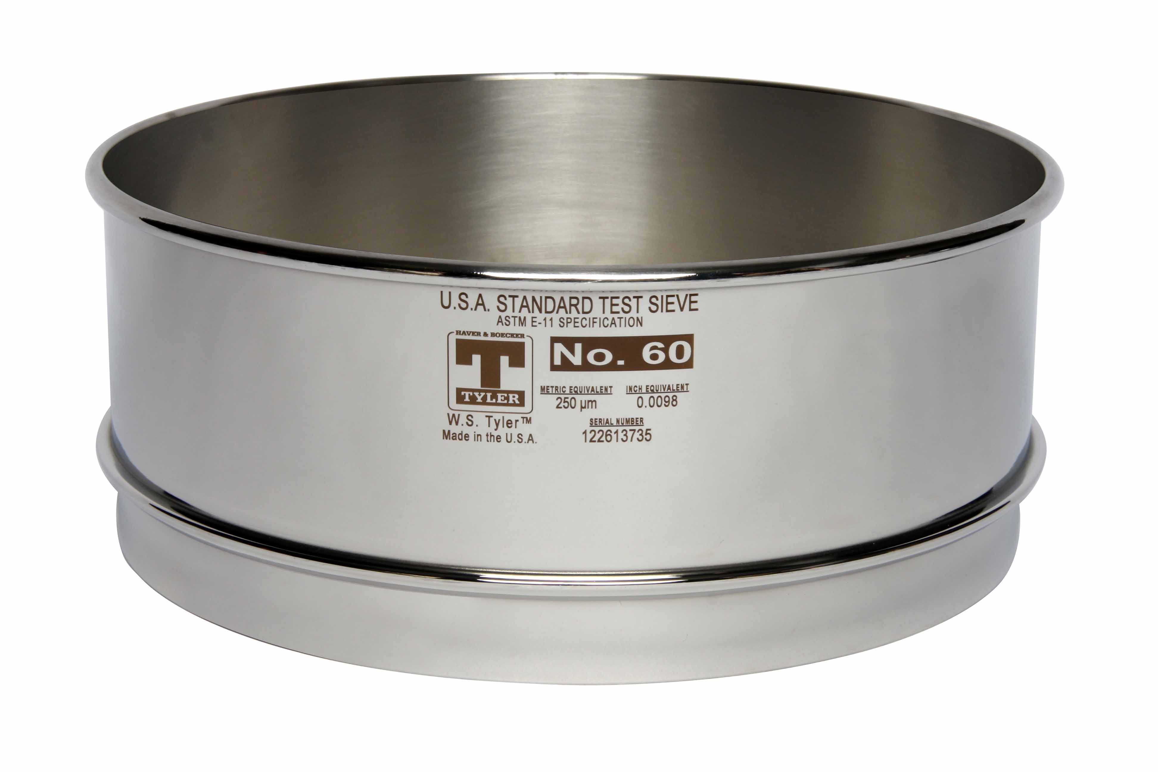 Tamiz 12" malla 30 US STD Acero Inoxidable, diámetro: 305 mm, altura: 107mm, abertura: 600 μm, altura completa Marca TYLER