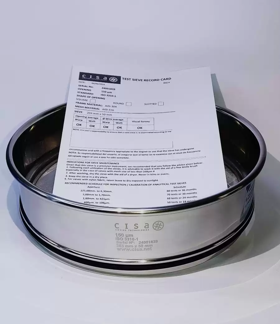 Tamiz Malla 100 US STD, 8 pulgadas, Acero Inoxidable Cisa