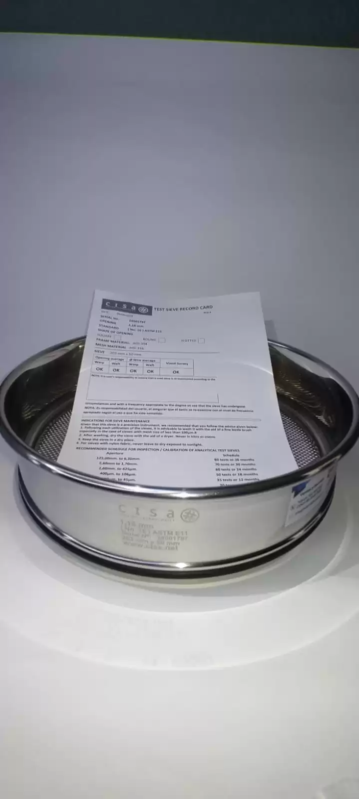 individual de cada tamiz grabada con láser, para asegurar