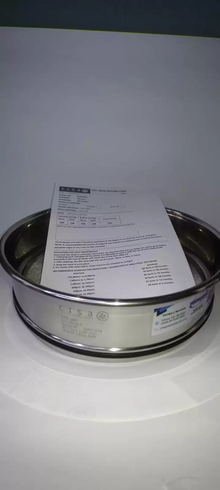 individual de cada tamiz grabada con láser, para asegurar